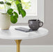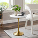 Let modern inspiration flow from the Lippa 20" Round Side Table. This pedestal table is perfect for the living room, office, lounge area, or entryway. Its round tabletop is crafted with MDF with a high gloss finish and beveled edge for a contemporary yet timeless design. Embodying an iconic mid-century silhouette, this pedestal dining table floats on a sleek tapered metal pedestal base with a chip-resistant brushed gold finish. Includes non-marking felt pad to protect flooring. Assembly required.