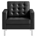 Revolutionize your living room furniture with the iconic Loft Vegan Leather Armchair. Adding visual depth to your living room or lounge space, Loft features soft and durable vegan leather upholstery accented with classic biscuit tufting. This modern accent chair showcases a captivating linear design, tubular stainless steel legs, and non-marking foot caps that protect flooring. Inspired by the richness of mid-century modern style, this upholstered chair is an ideal choice for living rooms, office reception areas, and lounge spaces. Armchair Weight Capacity: 330 lbs.