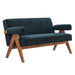 Add comfort and style to your home with the Lyra Heathered Fabric Upholstered Loveseat. This contemporary settee is chic and luxurious, featuring a relaxed design with a subtly angled backrest. Lyra comes upholstered in woven heathered fabric, creating a comfortable resting spot where you can dive into a good book or enjoy a cup of coffee. Featuring a sturdy plywood frame, inverted V-shaped rubberwood legs, and dense foam padding, this modern loveseat provides stability while enhancing living room, bedroom, hallway, or entryway spaces. Includes non-marking feet. Assembly Required. Weight Capacity: 662 lbs.