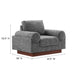 Experience contemporary luxury with the Oasis Fabric Upholstered Armchair infusing modern design and a streamlined silhouette into your living room, lounge area, or office. Showcasing a deep, cozy seat, this comfortable living room armchair offers unparalleled relaxation with armrests that resemble oversized bolster pillows. The dense foam padded cushions with pocket springs provide premium support, while the sinuous spring support system ensures lasting durability. Covered in stain-resistant polyester fabric, this upholstered accent chair exudes elegance while resting on a sturdy wood veneer plinth base. Assembly is a breeze, allowing you to effortlessly incorporate this luxurious accent chair into your home. Enhance your living space with this modern armchair that harmonizes comfort, style, and convenience. Weight Capacity: 200 lbs.