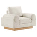 Experience contemporary luxury with the Oasis Fabric Upholstered Armchair infusing modern design and a streamlined silhouette into your living room, lounge area, or office. Showcasing a deep, cozy seat, this comfortable living room armchair offers unparalleled relaxation with armrests that resemble oversized bolster pillows. The dense foam padded cushions with pocket springs provide premium support, while the sinuous spring support system ensures lasting durability. Covered in stain-resistant polyester fabric, this upholstered accent chair exudes elegance while resting on a sturdy wood veneer plinth base. Assembly is a breeze, allowing you to effortlessly incorporate this luxurious accent chair into your home. Enhance your living space with this modern armchair that harmonizes comfort, style, and convenience. Weight Capacity: 200 lbs.