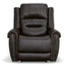 The generous padding and heavy-thread stitching detail of the Oscar power recliner with power headrest instantly grabs your attention and welcomes you to take a seat. Nailhead trim traces the edges of the arm fronts to highlight the welcoming silhouette, while an extended footrest provides additional leg rest space for taller users. Customize your sit with power recline and headrest that can be adjusted at the touch of a button. Outfitted in a dark, molasses brown fabric, this recliner brings a leather look to your room with the softness and comfort of fabric.