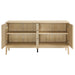 Harmonize retro style and modern design in your home with the Samos 62� Sideboard. Crafted from MDF with a sleek paper laminate finish, this vintage-inspired buffet cabinet commands attention. The doors are adorned with rectangular panels forming a geometric grid, featuring framed recessed shapes for three-dimensional texture. This design adds visual depth and elegance to any space while the architectural grid cleverly complements the sideboard with 4 push-to-open doors, which open to reveal adjustable shelves and generous storage. For added style and stability, this console table with storage stands on four tapered legs and includes a central leveling leg. Samos is perfect as a living room sideboard, office cabinet, hallway storage, or dining room buffet. It even shines as a high media entertainment stand for anchored or wall-mounted TVs. This cabinet with doors and shelves includes non-marking foot pads to protect your floors and requires simple assembly. Designed for those who appreciate modern sideboards and buffets, Samos is a must-have for any stylish home. Weight capacity of top shelf: 308 lbs. Concealed shelves: 83 lbs.