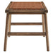 Spark engaging conversations with the Saoirse Bench. Artfully crafted with woven leather over a sturdy rubberwood frame, this bench blends contemporary design with tactile elegance. Non-marking foot pads ensure both stability and floor protection, while the basket weave design and side supports enhance its durability. This modern leather wood bench is perfect for the hallway, mudroom, sunroom, entryway, or the end of the bed. Assembly required. Weight Capacity: 331 lbs.