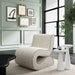 Join the wave of the future with the state-of-the-art Senna chair. Our sexy take on the wiggle chair, it features a contemporary amorphous design, upholstered in a textural fabric, supported by a sturdy birch frame, and accented with a subtle contrast velvet piping - this chair has it all! Add this piece to any space for an air of eccentricity and for a definite conversation starter. Available in two fabric options.