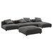Revel in ultimate comfort and modern style with the Solace Modular Sectional Sofa. This oversized fabric sectional sofa is perfect for any living room, offering endless flexibility. Its modular furniture design allows you to change the arrangement to suit the needs of the moment or expand your seating by adding more pieces in the future. Featuring a sturdy frame, dense foam padding, and a sinuous spring support system, the Solace Large Sectional Sofa grants a premium seating experience with its soft textured woven fabric upholstery. The comfy upholstery adds a cozy, casual vibe, making this deep sectional sofa a perfect addition to any living space or lounge area. Equipped with non-marking plastic glides and complementing accent pillows, this 4-piece sectional sofa set is both stylish and practical. With no assembly required, you can enjoy immediate relaxation with this L-shaped modular sectional sofa. Set Includes: 1 Armless Chair, 1 Armless Loveseat, 1 Armless Chaise, 1 Ottoman