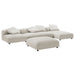 Revel in ultimate comfort and modern style with the Solace Modular Sectional Sofa. This oversized fabric sectional sofa is perfect for any living room, offering endless flexibility. Its modular furniture design allows you to change the arrangement to suit the needs of the moment or expand your seating by adding more pieces in the future. Featuring a sturdy frame, dense foam padding, and a sinuous spring support system, the Solace Large Sectional Sofa grants a premium seating experience with its soft textured woven fabric upholstery. The comfy upholstery adds a cozy, casual vibe, making this deep sectional sofa a perfect addition to any living space or lounge area. Equipped with non-marking plastic glides and complementing accent pillows, this 4-piece sectional sofa set is both stylish and practical. With no assembly required, you can enjoy immediate relaxation with this L-shaped modular sectional sofa. Set Includes: 1 Armless Chair, 1 Armless Loveseat, 1 Armless Chaise, 1 Ottoman
