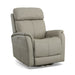 Enjoy an extensive range of motion in a chair that looks as good as it feels with the MOV 360 View recliner. Whether you are gaming, chatting or watching a movie, you can stay active as you sit with help from a swivel that rotates a full 360 degrees. Pad-over arms are paired with a divided backrest for head and lower back support, while an extended footrest accommodates taller users. Flexsteel's patented Blue Steel Spring™ seat system provides long-lasting seat support that you can count on. Move seamlessly from sitting to fully reclined with a power button that allows you to customize your comfort. Upholstered in a premium, taupe leather with a welt trim and heavy thread top-stitching for a refined look, View is sure to make a statement in your home.