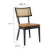 Charming cottage style blends with farmhouse whimsy on the Caledonia Wood Dining Chair Set of Two. Serving as an accent chair or a kitchen chair, this pair adds a touch of retro elegance to dining or living room. Featuring a curved backrest and airy design thanks to its open weave rattan detail, this dining chair set is crafted with solid elm wood and boasts upholstered seats with foam padding for comfort and support. The vegan leather seat covers, featuring a hidden zipper for easy removal, are elegantly accentuated with a French seam, adding a refined detail that echoes the artistic vibe of boho dining chairs. A versatile addition to the modern home, these vegan leather chairs make a statement in the dining room or as accent chairs in the living room, office, entryway, or other seating area. Whether you're looking for a dining chair set for your home bistro or a simple chair to complete your dining area, the Caledonia collection has a unique aesthetic that fuses classic comfort with sleek, modern lines. This set includes two elm wood and rattan dining chairs, with non-marking foot caps to protect floors. Assembly required. Weight Capacity: 330 lbs.
