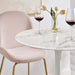 Let modern inspiration flow while gathered around the Lippa 28" Round Artificial Marble Bar Table. Perfect for entertaining family and friends or everyday dining, this pedestal bar table comfortably seats two. Its round tabletop is crafted with artificial marble and features a beveled edge. Embodying an iconic mid-century silhouette, this pedestal bar-height table floats on a sleek tapered metal pedestal base with a chip-resistant lacquered finish. Includes non-marking felt pad to protect flooring. Assembly required.