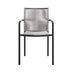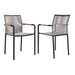 Enjoy al fresco dining on your patio, deck, or in the backyard with the Serenity Outdoor Patio Aluminum Set of Two Dining Armchairs. This contemporary patio armchair set, constructed from powder-coated aluminum, is the picture of strength and resilience at your outdoor dining table. The sleek silhouette and tightly woven rope create a supportive and comfortable seat and backrest for lingering summer suppers. With straight legs that have non-marking foot pins to protect your deck or patio floors, these UV and water-resistant armchairs are easy to maneuver and place poolside or in the backyard shade. Weight Limit: 500 lbs.