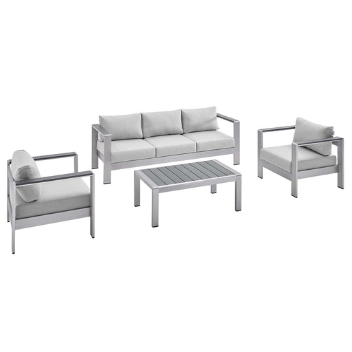 ModwayEnjoy your patio or backyard leisure time with the strong and durable Shore Aluminum 4 Piece Outdoor Patio Furniture Set. Made with anodized brushe...