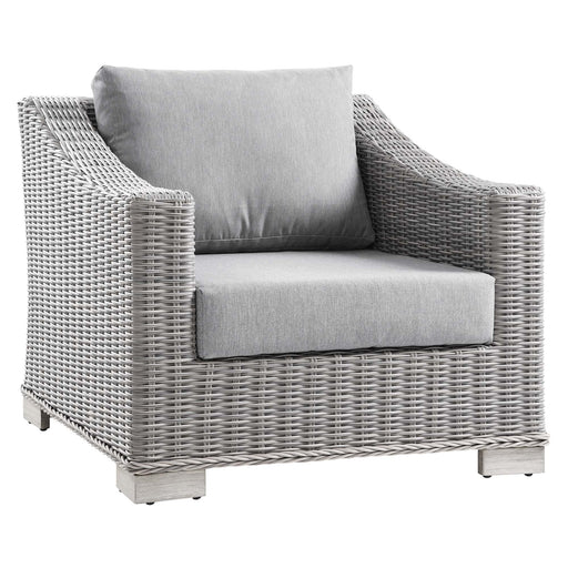 ModwayEnjoy fresh air and alfresco relaxation with the Conway Outdoor Patio Wicker Rattan Armchair. Wrapped in UV-resistant light gray synthetic wicker r...