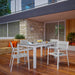 Bordered by the Atlantic Ocean rests the Maine Outdoor Patio Dining Furniture Collection. Distinguished by its synthetic wood grain plank boards, powder-coated aluminum frame, inspired design, and rich organic feel, Maine Outdoor Dining Set stands out as a versatile series for outdoor dining. This contemporary modern patio dining set is perfect for contemporary patios, backyards, poolside, and other outdoor lounge areas.