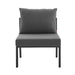 Refresh your outdoor decor with the Riverside Outdoor Patio Aluminum Sectional Set. This set includes one Riverside Outdoor Patio Armchair. Defined by a crisp, coastal style, this installment of the Riverside outdoor sectional sofa furniture collection features an open slatted back design, angled back legs, and plush 4" thick all-weather UV-resistant fabric cushions. Solidly constructed with a powder-coated aluminum frame, the Riverside outdoor sectional will enhance the look of your patio, backyard, balcony, porch, deck, or poolside area. Includes foot caps. Seat Weight Capacity: 300 lbs
