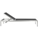 Maintain clean lines with the Shore Outdoor Patio Mesh Sun Lounger and Side Table Set. Strong and durable, relax as you choose from four available recline positions or sunbathe while lying flush. Made with an anodized brushed aluminum frame and tone-on-tone grays, Shore Mesh Patio Chaise Lounge and Side Table set is a breeze to assemble, comes with clear wheels for easy mobility on the top end, and non-marking black plastic foot caps under the bottom two support legs. Chic and minimalist, the Shore Outdoor Chaise Lounge and Side Table set is a piece built to last with the comfort and versatility you�ve been looking for in an outdoor sunbathing area.