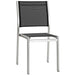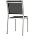 Enjoy your patio or backyard leisure time with the strong and durable Shore Outdoor Patio Dining Furniture Set. Made with an anodized brushed aluminum frame and non-marking black plastic foot caps, Shore Outdoor Dining set features tone-on-tone grays with wood accents on the paneling for a chic and minimalist look. The Shore Patio Dining collection complements your casual gatherings with a look and functionality that you can rely on.