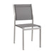 Enjoy your patio or backyard leisure time with the strong and durable Shore Outdoor Patio Dining Side Chair in Mesh. Made with an anodized brushed aluminum frame and breathable Textilene� mesh, Shore Patio Accent Chair is a breeze to assemble and comes with non-marking black plastic foot caps under the legs. Chic and minimalist, the Shore Outdoor Dining Chair complements your casual gatherings with a look and functionality that you can rely on.