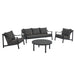 Elevate your outdoor space with the Terrace Modern Contemporary Patio 4-Piece Conversation Set. Crafted from powder-coated aluminum, this aluminum outdoor furniture set combines durability with sleek design. The patio couch set includes a sofa, two armchairs, and a coffee table, making it a standout collection in any patio setting. The sloped armrests and gentle recline of the seating pieces offer a perfect blend of comfort and style. Designed for all weather conditions, this 4 piece outdoor patio set comes with removable seat and backrest cushions, upholstered in UV and water-resistant fabric. The cushion covers, equipped with zippers, provide easy cleaning. Non-marking plastic foot glides protect your flooring, making this aluminum outdoor furniture set ideal for any surface. Whether you need a complete patio furniture set, a stylish bistro set, or versatile outdoor lounge furniture, the Terrace 4-Piece Aluminum Patio Conversation Set with 1 Coffee Table, 2 Armchairs, and 1 Three-Seater Sofa is your go-to choice for exceptional patio seating. Enhance your backyard, porch, or garden with this aluminum patio furniture collection, and enjoy comfort and style all year round. Assembly required.