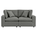 A haven for cozy relaxation right in your own backyard, Commix features plush comfort, a clean-lined design, and a spacious profile that makes an attractive statement on the porch, patio, or by the poolside. Made for sprawling out in the sun or curling up with a good book, this patio loveseat features generously padded cushions covered in water-repellent and UV-resistant covers making them ideal for your outdoor space. This outdoor two-seater sofa features an all-weather construction with a powder-coated aluminum frame and non-marking foot caps to protect flooring surfaces. Beckoning guests to sit and stay a while, the Commix Outdoor Patio Collection is perfect for al fresco entertaining or lounging amidst warm weather. Each Seat Weight Capacity: 300 lbs.