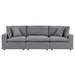 A haven for cozy relaxation right in your own backyard, Commix features plush comfort, a clean-lined design, and a spacious profile that makes an attractive statement on the porch, patio, or by the poolside. Made for sprawling out in the sun or curling up with a good book, this patio sofa features generously padded cushions covered in water-repellent and UV-resistant Sunbrella� fabric covers making them ideal for your outdoor space. This outdoor three-seater sofa features an all-weather construction with a powder-coated aluminum frame and non-marking foot caps to protect flooring surfaces. Beckoning guests to sit and stay a while, the Commix Outdoor Patio Collection is perfect for al fresco entertaining or lounging amidst warm weather. Each Seat Weight Capacity: 300 lbs.