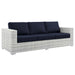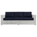Gather stages of sensitivity with the Convene outdoor sectional series. Made with a synthetic rattan weave and a powder-coated aluminum frame, Convene is a versatile patio sofa from an outdoor collection that shifts and combines according to the spontaneous needs of the moment. Outfitted with all-weather fabric cushions, the Convene Outdoor Sofa leaves a positive impression on friends and family while enhancing your patio, backyard, or poolside retreat with palpable distinction.