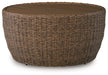 Poolside comfort and style have never been so chic. With this outdoor coffee table, lounging alfresco is effortlessly cool. The woven resin wicker combines intricate beauty with a dose of durability. And with a hand-brushed aluminum tabletop, you get the beauty of wood with the longevity you need.