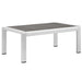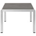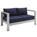 Enjoy your patio or backyard leisure time with the strong and durable Shore Aluminum 4 Piece Outdoor Patio Furniture Set. Made with anodized brushed aluminum frames and non-marking black plastic foot caps, Shore comes outfitted with resilient Sunbrella� fabric canvas cushions tested to last through all weather conditions. The Shore Outdoor Aluminum Outdoor Patio Set complements your casual gatherings with a look and functionality you can rely on. Set Includes: 1 Loveseat, 2 Armless Chairs, 1 Coffee Table
