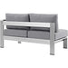 Enjoy your patio or backyard leisure time with the strong and durable Shore Outdoor Patio Right Arm Corner Loveseat. Made with an anodized brushed aluminum frame and non-marking black plastic foot caps, Shore Outdoor Patio Loveseat comes outfitted with resilient fabric canvas tested to last through all weather conditions. The Shore Outdoor Patio Right Arm Loveseat complements your casual gatherings with a look and functionality you can rely on.