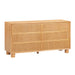 The Miles Natural Wood Dresser delivers a harmonious blend of sculptured Memphis forms and organic natural finishes, presenting a sophisticated addition to your bedroom. This handcrafted dresser showcases solid wood cross-hatch patterns on the door fronts, balanced against a clean exterior form, making it a versatile piece that seamlessly fits into any space, emphasizing natural materials. Its clean and smooth push-to-open drawers brings a high-end feel, offering flexibility and enhancing the overall aesthetic of your space without the stress of matching metal finishes.