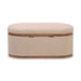 Add a textural touch to your living space with the versatile Olivier Oval Storage Ottoman, available in lush peach or ivory boucle or a captivating tribal cotton pattern. Featuring a tilting lid for convenient storage, this ottoman is wrapped in textured fabrics and accentuated with elegant acacia trim. The cotton option, adorned with a large tribal pattern in beautiful earthy tones, effortlessly enhances any space with its rich, bohemian flair, while the finished interior offers a refined touch.