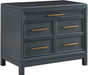 Alexander offers affordable luxury and opulent style with a Midnight finish and generously sized Champagne Bronze finish hardware. Nothing was spared when it comes to the quality, design and special features on this transitional style collection. The entertainment wall consists of gorgeous reeded glass doors, LED lighting and soft close barrister style lift doors and the adjustable cocktail table with rapid charging is a must have for innovative functionality.