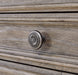 | Details | Made with hardwood solids, oak and ash veneer, cast resin components and engineered wood substrates, Top with inlaid ash veneer border, Light warm grayish brown glazed wood finish, Round metal knobs with satin nickel-tone finish, 5 drawers with fully finished interior, dovetail construction and ball-bearing side glides, Drawers with inset framed fronts, Breakfront pilasters | |