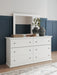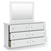 | Details | B139B43: Includes panel headboard/footboard and rails, Made with engineered wood (MDF/particleboard/plywood) and decorative laminate for the right balance of affordability and durability, Replicated solid white paint, Decorative laminate replicates natural or man-made material surfaces with consistent color, pattern and texture, Foundation/box spring required, sold separately, Mattress available, sold separately, Assembly required, B139B40: Includes dresser and mirror, Made of engineered wood (MDF/particleboard), Knobs with pewter-tone finish, Scalloped moulding, 6 smooth-operating drawers, Includes tipover restraint device, Mirror attaches to back of dresser; can also be mounted on wall horizontally or vertically, Safety is a top priority, clothing storage units are designed to meet the most current standard for stability, ASTM F 2057 (ASTM International), Drawers extend out to accommodate maximum access to drawer interior while maintaining safety, B139-46: Made of engineered wood (MDF/particleboard), Pewter-tone knobs, Scalloped moulding, 5 smooth-operating drawers, Small Space Solution, Includes tipover restraint device, Safety is a top priority, clothing storage units are designed to meet the most current standard for stability, ASTM F 2057 (ASTM International), Drawers extend out to accommodate maximum access to drawer interior while maintaining safety, B139-91: Made of engineered wood (MDF/particleboard), Pewter-tone knobs, 1 smooth-operating drawer, 1 storage cubby, Scalloped moulding, Small Space Solution, | |