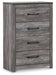 Alluring smoky gray hues create an ambiance that just feels right. This 4-drawer chest has a charming wood-like appeal enriched by a two-tone, textured look. Light neutral shades contrasted by a dark charcoal finish bring a refined yet relaxed feel to contemporary decor and a sense of serenity to your space.