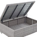 Enjoy fresh air and alfresco relaxation with the Conway Outdoor Patio Wicker Rattan 4-Piece Furniture Set. Wrapped in UV-resistant light gray synthetic wicker rattan, this patio furniture set boasts organic texture and a neutral hue that brings a calming presence to your outdoor space. The frames of this outdoor furniture set are crafted with durable powder-coated aluminum and rest on L-shaped legs with plastic foot glides. Thick foam padded cushions covered with removable, all-weather polyester fabric covers offer a comfortable seat and affix securely to the lounge chair with cord tension attachments. Trending aesthetics and a classic design define this outdoor patio furniture collection making it a beautiful addition to any outdoor space including the backyard, patio, porch, balcony, or poolside. Assembly required. Set Includes: Sofa, 2 Armchairs, Storage Coffee Table