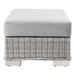 Enjoy fresh air and alfresco relaxation with the Conway Outdoor Patio Wicker Rattan 5-Piece Furniture Set. Wrapped in UV-resistant light gray synthetic wicker rattan, this patio furniture set boasts organic texture and a neutral hue that brings a calming presence to your outdoor space. The frames of this outdoor furniture set are crafted with durable powder-coated aluminum and rest on L-shaped legs with plastic foot glides. Thick foam padded cushions covered with removable, all-weather polyester fabric covers offer a comfortable seat and affix securely to the lounge chair with cord tension attachments. Trending aesthetics and a classic design define this outdoor patio furniture collection making it a beautiful addition to any outdoor space including the backyard, patio, porch, balcony, or poolside. Assembly required. Set Includes: Sofa, Loveseat, Armchair, Ottoman, Storage Coffee Table