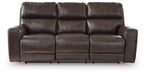 Versatile style teams up with everyday convenience to create this power reclining sofa. Settle into the sleek leather seating area and effortlessly recline with one-touch controls. Need some extra ambiance? Wireless speakers in the drop-down table make entertainment more immersive. And with the addition of USB charging, you can keep go-to devices close as you lounge. Outfitted in a goes-with-anything neutral hue, it’s the perfect blend of chic transitional aesthetics and modern function.