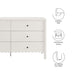 The Emmeline 6-Drawer Dresser blends modern elegance with practical storage, bringing artistic flair to your bedroom or living room. Featuring a signature scalloped edge, this wavy double dresser adds a soft, flowing silhouette to any space. With six spacious full-glide drawers, the dresser offers ample storage for organizing clothing, bedroom essentials, linens, or even media accessories when used as a TV stand for a wall-mounted TV. Crafted with a sturdy frame and finished in smooth laminate, this versatile dresser brings both function and style to your home. The round drawer knobs and non-marking glides enhance its refined appearance while ensuring your floors stay protected. Whether used in a girls' bedroom, a modern living room, or as an organizer in the hallway, the Emmeline 6-Drawer Dresser provides an elegant storage solution. Assembly required.