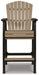 Raise the bar on outdoor living with this bar stool set. Crafted for style and durability, it caters with sturdy armrests, an ample footrest, a high shell back and a waterfall wrapped seat for curvaceous comfort. Adding to its appeal: a standout two-tone look that pairs driftwood and black finishes for twice the interest, and a slatted design to easily shed rainwater.