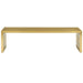 Straight lines were once deemed the realm of strict logic. This conduit design accomplishes something quite profound. It blends linear components with a stylish gold-colored stainless steel tubular effect. Modernism used to be about extremes. Wild shapes and patterns that don�t dare resemble its predecessors. We�ve reached an age of maturity of sorts. We appreciate style, but all the more, we respect those designs that represent a blending of cultures. The Gridiron tubular stainless steel bench is famous not for its radical shape, but for the strategic transcendence that it provides. Gridiron is perfect for reception rooms, living and lounge areas, and any other place in need of transformation. Comes fully assembled.