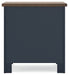 Add homespun charm to your restful retreat. A modern take on a timeless silhouette, this nightstand pairs a dark slate blue finish with a light brown top. Drawer fronts and legs in a classic Shaker style bring an air of beautiful simplicity to the bedroom. Whether it's part of a charmingly curated guest suite or a casually carefree kids room, this nightstand is a welcome addition.
