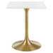 Let modern inspiration flow while gathered around the Lippa 24" Square Dining Table. Perfect for entertaining family and friends or everyday dining, this pedestal table comfortably seats two. Its square tabletop is crafted with MDF with a high gloss finish and beveled edge for a contemporary yet timeless design. Embodying an iconic mid-century silhouette, this pedestal dining table floats on a sleek tapered metal pedestal base with a chip-resistant brushed gold finish. Includes non-marking felt pad to protect flooring. Assembly required.
