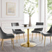 Let modern inspiration flow while gathered around the Lippa 78" Oval Artificial Marble Dining Table. Perfect for entertaining family and friends or everyday dining, this pedestal table comfortably seats eight. Its oval tabletop is crafted with artificial marble and beveled edge for a contemporary yet timeless design. Embodying an iconic mid-century silhouette, this pedestal dining table floats on a sleek tapered metal pedestal base with a chip-resistant brushed gold finish. Includes non-marking felt pad to protect flooring. Assembly required.