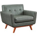 The Lyon chair captures the essence of Mid-Century style that refuses to fade into obscurity. The gorgeous smoke grey eco leather is welcoming and adds charm to any room. The cushioned arms provide added comfort, while the small scale tufting adds a pop of personality. Handcrafted the Lyon collection will undoubtedly add style to your space, while the kiln dried solid wood frame will assure years of support and comfort.