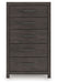 Designed with everyday style in mind, this chest of drawers is a simply chic approach to modern living. A dark charcoal finish blends black and brown undertones, creating a versatile look that effortlessly pairs with your existing pieces. And for must-have function, five smooth-gliding drawers store clothes and linens in charming fashion.