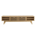 | Featured-0 | Mid-Century Style 70� TV Stand Dual Slatted Sliding Doors Four Media Storage Cubbies Smooth Wood Grain laminate Two Cable Management Holes Two Adjustable Storage Shelves Durable Particleboard Construction | |