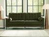 Details Corner-blocked frame, Loose seat and attached back cushions with button tufting, High-quality foam cushions wrapped in poly fiber, Bolster pillows included, Pillows with soft polyfill, Polyester velvet upholstery, Tapered accent legs, Platform foundation system resists sagging 3x better than spring system after 20,000 testing cycles by providing more even support, Smooth platform foundation maintains tight, wrinkle-free look without dips or sags that can occur over time with sinuous spring foundations