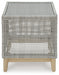 This end table invites your casual contemporary style outdoors. With its resin wicker in a chic neutral hue, it expertly marries refined design with durability. Breezy summer mornings and cold winter nights are made all the more enjoyable with a glass tabletop on hand to hold beverages, snacks and your latest poolside read.