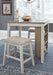 This clever counter height table and bar stool set invites you to raise the bar on small space living. An inspired choice for coastal chic or modern farmhouse settings, this clean-lined, simply striking set doubles the charm with brown tone plank effect tops, paired with grayish white bases with rub through effect for timeworn appeal. The table’s built-in open shelves make the most of every inch of space.